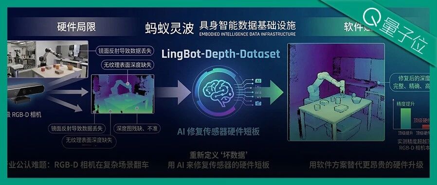 Core Viewpoint - The article emphasizes that the limitation of spatial intelligence in robotics is primarily due to insufficient data, which affects the generalization ability of models, leading to reliance on hardware solutions [1][2]. Group 1: Data Challenges in Robotics - The lack of reliable data sources has historically forced the industry to compensate by enhancing hardware capabilities, particularly in the use of RGB-D cameras for spatial perception [3][4]. - RGB-D cameras, while popular, face significant challenges in accurately perceiving environments, especially in the presence of reflective or transparent surfaces, which can lead to erroneous data [5][6][9]. Group 2: Introduction of LingBot-Depth-Dataset - Ant Group's LingBot-Depth-Dataset has been introduced as a solution to the data scarcity issue, comprising 2.71TB of data with 3 million pairs of labeled RGB-D data, including real and synthetic data from various environments [11][13][20]. - The dataset's diverse data distribution, collected from multiple depth cameras, enhances its applicability for training models in different scenarios, thus improving generalization [18][19]. Group 3: Advancements in Spatial Intelligence - The deployment of LingBot-Depth has enabled robots to effectively grasp transparent and reflective objects, a task previously deemed challenging [22]. - Following this, Ant Group has released additional models like LingBot-VLA and LingBot-World, which integrate visual, linguistic, and action capabilities, further advancing the field of embodied intelligence [24][25][28]. Group 4: Software vs. Hardware in AI Development - The article highlights a shift in focus within the industry towards prioritizing data and algorithm architecture over merely increasing the number and cost of sensors, as seen in the autonomous driving sector [30][31]. - This approach suggests that enhancing spatial intelligence through software methods can lead to more effective and cost-efficient solutions in robotics, aligning with the broader trend of prioritizing data-driven advancements [29][31].
