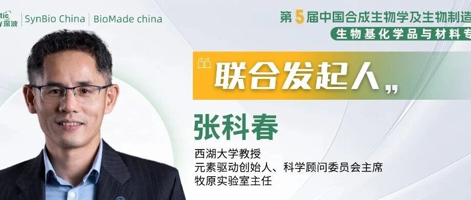 2026年3月31日-4月1日,"SynBio China第五届中国合成生物学及生物制造大会"将在杭州隆重举办。 同期 "生物基化学品与材料专场" 有幸邀请到 「西湖大学教授; 元素驱动创始人、科学顾问委员会主席;牧原实验室主任 张科春老师 」 作为本专场 联合发起人,并发表主题演讲。 张科春 西湖大学教授;元素驱动创始人、科学顾问委员会主席;牧原实验室主任 张科春,西湖大学工学院教授,从事合成生物相关研究已有20余年,本科毕业于中国科技大学,博士毕业于加州理工学院,师从合成生物领袖科学 家David A. Tirrell、Frances H. Arnold(诺贝尔奖获得者)James Liao等。回国前,张科春为明尼苏达大学终身教授,具有AI 蛋白设计、酶工 程、合成生物多学科交叉背景,曾开发了第一种可规模化生产的弹性生物降解高分子材料,参与创建了全球第一个可持续高分子研究中心。 元素驱动简介 元素驱动是西湖大学新质生产力培育平台的重点孵化项目,为国家高新技术企业、浙江省专精特新中小企业。公司初步建成以AI+生物制造为引擎的MiNT- X Platform研发平台,开发高效绿色生物合成氨基酸、系列高性能新型 ...
