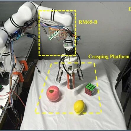 Core Viewpoint - The article discusses the development of a novel multi-modal bionic robotic hand that mimics human finger mechanics for improved object grasping capabilities [3][4]. Group 1: Design and Mechanism - The bionic hand integrates magnetic silicone skin with a rigid skeleton, featuring a vacuum suction cup at the fingertip, allowing for three grasping modes: wrapping, parallel, and adhesion [4]. - The internal Hall sensor unit detects the deformation of the magnetic silicone film, providing real-time feedback on the grasping process [6]. Group 2: Grasping Phases and Data Collection - The grasping process is divided into four stages: approaching the object, gripping the object, lifting the object, and releasing the object, with distinct data trends observed in the first two stages [8]. - A control system collects magnetic field data every 0.25 seconds to establish a relationship between magnetic field changes and object size during the grasping operation [10]. Group 3: Experimental Setup - An experimental platform was established using an RM65 robotic arm and a D455 depth camera to autonomously identify and grasp objects, demonstrating the robotic hand's adaptability in real-world scenarios [11].