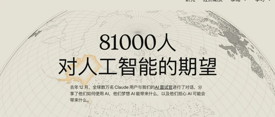 这个问题我们讨论了三年,几乎所有的答案都来自推测、来自案例、来自舆论,没有人真正大规模 地去问过用户。 Anthropic 上周发布的这份报告,他们用 Claude 驱动的 AI 访谈员,在一周内完成了对全球 80,50 8 名用户的开放式对话访谈,覆盖 159 个国家、70 种语言。访谈结束后再用 Claude 驱动的分类器对所有对 话进行多维度标注。 锦秋基金创始合伙人杨洁在 2025年11月1日首期「 锦秋会 ——锦秋基金CEO大会 」上, 就提到: 模型是commodity,产品不是,懂用户的产品更稀缺 。 当模型成为基础设施后,竞争从"谁有模型"变成"谁更懂用户"。 锦秋基金认为,某种程度上,这也是 对已经在使用AI用户进行的人类史上规模最大 的定性研究 ,是创业者了解当下的AI用户的重要资料。 AI 到底在改变谁的生活,改变了什么? 因此也对这篇文章做了编译。 在这份报告里,我们可以看到: AI已经被全球用户广泛接受 :全球没有一个国家的正向情绪低于 60%;81% 的用户说,AI 已经在某种程度上实现了他们的期望。 用户说想要效率,但买单的理由是"生活": 很多用户起初描述的需求是"提高工作效率 ...