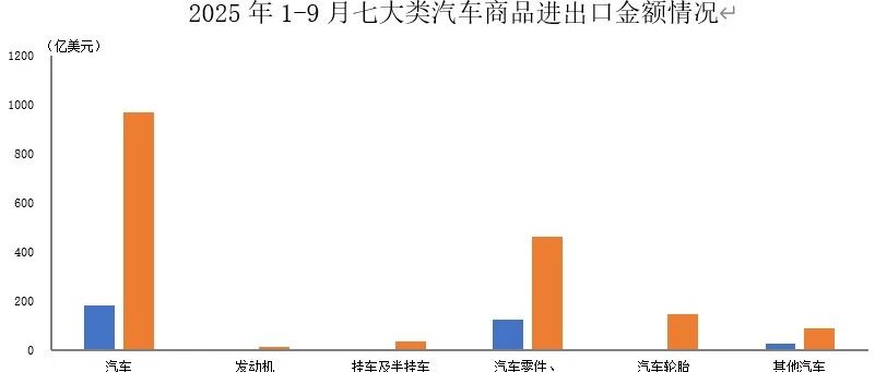 据中国汽车工业协会整理的海 关总 署数 据显示, 2025 年 9 月 , 汽车商品进出口总额为 248.9 亿美元, 环比下降 3.6% ,同比增长 0.9% 。其中进口金额 38.5 亿美元,环比下降 7.5% ,同比下降 30.0% ;出口金额 210.3 亿美元,环比下降 2.8% ,同比增长 9.8% 。 2025年1 - 9 月, 全国汽车商品累计进出口总额为 2068.1 亿美元,同比下降 1.0% 。其中进口金额 342.6 亿美元,同比下降 32.9% ;出口金额 1725.5 亿美元,同比增长 9.3% 。 来源: 中汽协会行业信息部 ...