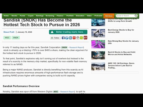 Greetings. I'm Sean Puit, Zach's equity strategist, and today I'm going to be discussing how Sandis has become the hottest tech stock to pursue in 2026. So, in only 11 trading days so far this year, Sandish Corporation stock, ticker symbol SNDK, is already up a blazing 70% to over $400 a share, making the clear argument for the hottest tech stock to pursue in 2026.And to that point, Sandis explosive rally isn't coming out of nowhere, but instead is the result of a scarcity in the memory chip market, specifi ...