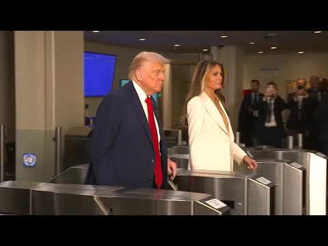When President Donald Trump and the First lady arrived at the United Nations Tuesday morning, the escalator that led them up to the General Assembly stopped, jolting her and the president, who was behind her, to a halt before they steadied themselves and continued climbing up the metal steps. -------- More on Bloomberg Television and Markets Like this video? Subscribe and turn on notifications so you don't miss any videos from Bloomberg Markets & Finance: https://tinyurl.com/ysu5b8a9 Visit http://www.bloomb ...