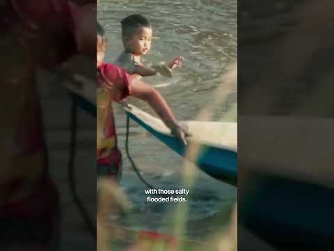 Climate change has hit hard here. Rice has dropped from three harvests a year to just one during the rainy season when there's enough fresh water to flush out the sea. So the rest of the year, the family have come up with an ingenious idea with what to do with those salty flooded fields.Fewer rice crops might sound counterintuitive, but putting both rice and prawns in together means that Hong can still use her fields all year round rather than just the rainy season. And even better, the waste from the prawn ...