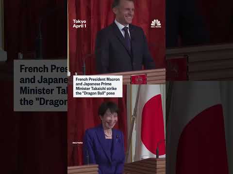 French President Macron and Japanese Prime Minister Takaichi strike the 'Dragon Ball' pose