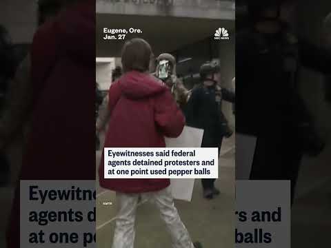 Federal officers clash with anti-ICE protesters outside a federal building in Eugene, Oregon