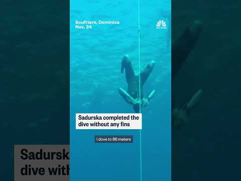 Ukrainian freediver Kateryna Sadurska sets a new world record with a 282-foot dive