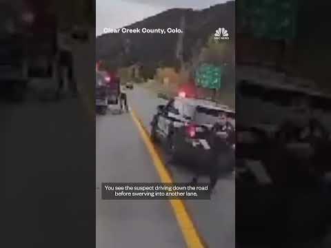 Authorities in Colorado releasing new video of what they say shows the driver of a stolen bus nearly slamming into police on the highway. You see the suspect driving down the road before swerving into another lane, almost clipping an officer and their cruiser. The incident happened last month, but the Clear Creek Sheriff's Office just posted this footage and is asking for help identifying that suspect. ...