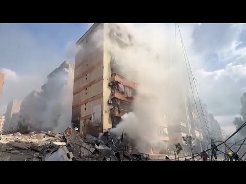 An apartment building crumbles in central Beirut as Israel pounds Lebanon's capital with the most intense bombardment since the start of the war. The IDF says it was targeting the financial assets of the Iranian-backed militia Hezbollah and issued a warning before the early morning strike. We visited the tower hours before the attack when it was damaged but not yet completely destroyed.Israel bombed this building in central Beirut, saying Hezbollah had millions of dollars in cash buried beneath it. You can ...