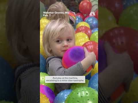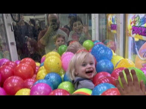 Toddler turns claw machine into personal ball pit