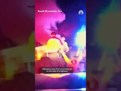 Dashcam video shows police officers rescue a man from a burning car in New Jersey