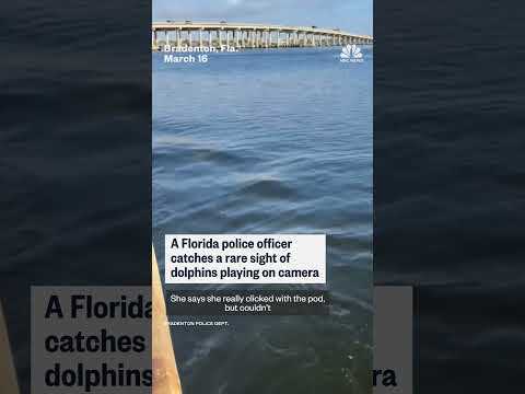 from our southern bureau. Take a look at this. Four dolphins playing in a Florida river.A police officer on foot patrol caught the amazing scene here. She says she really clicked with the pod but couldn't join them for a swim because she's on duty. Yeah, that that happens. ...