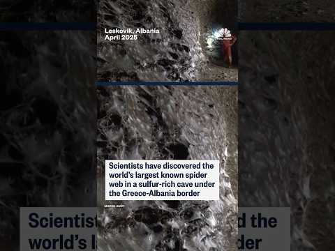 Scientists have discovered the world's largest known spider web in a cave under the Greece-Albania