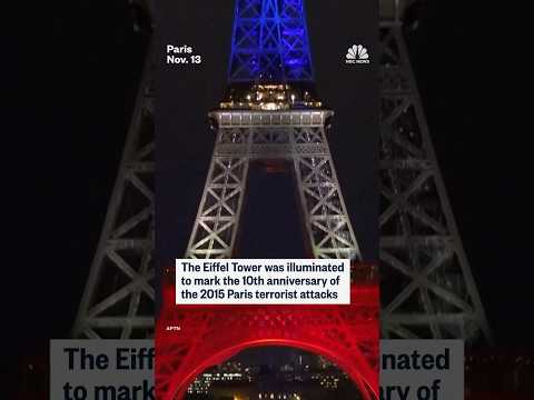 The Eiffel Tower was illuminated to mark the 10th anniversary of the 2015 Paris terrorist attacks