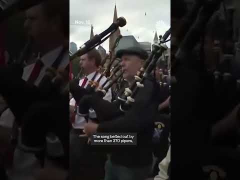 [Music] That was AC/DC's It's a Long Way to the Top. The song belted out by more than 370 pipers, breaking the previous record set in 2012. Thousands of people packed in to see the performance.Organizers say the oldest piper in the crowd was 98 years. ...