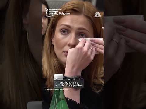 Interpreter cries as Ukrainian boy recalls mom's death