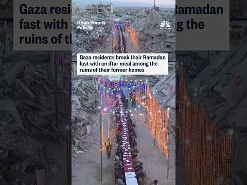 Gaza residents break their Ramadan fast with an iftar meal among the ruins of their former homes