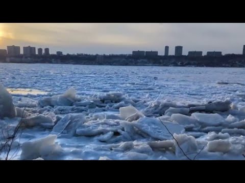 The Arctic freeze continues to send chills across the Northeast as Lake Erie erupts into massive ice mountains almost 100% frozen over for the first time in 30 years. But new images from Noah show a huge crack across the ice sheet. The Coast Guard conducting icebreaking for weeks to keep commercial vessels going, but authorities saying today it had to limit some icebreaking operations due to water depths.And if you think this frozen tundra looks more like the Arctic than a great lake, those in New York City ...