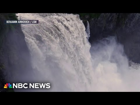 Tonight in Washington State, homes underwater and roads submerged as an atmospheric river rips through the Northwest with up to 15 inches of rain in the forecast. The famed snowquali falls raging at its highest point in a decade, leaving much of the state on flood watch, triggering mudslides and forcing water rescues. First responders deploying drones to help guide people to safety.This morning in Lewis County, a hellish commute as firefighters rescued drivers from fast rising waters. While out east, firefi ...