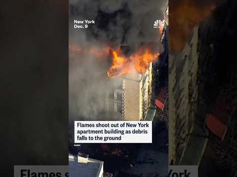 Flames shoot out of NYC apartment building as debris falls to the ground