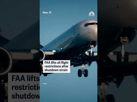 This morning, airlines cleared for takeoff just in time for the holiday travel rush. The FAA lifting all flight restrictions at the nation's 40 busiest airports, citing detailed reviews of safety trends and a steady decline in staffing concerns since the government shutdown ended. The decision follows a turbulent stretch at airports after the FAA slashed flights by 4% then 6% because of safety concerns caused by air traffic controller shortages during the government shutdown.It comes with the Thanksgiving t ...