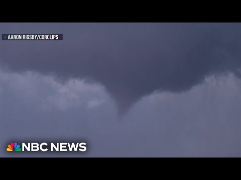 Big debris cloud. >> The likely tornado in Iowa filled the entire horizon. >> Yep.It's on the ground. >> Is it. >> Yep.Look at that debris. >> This video showing pieces of wreckage raining across the farmland in Downey, Iowa. >> Look at all the debris.Tornado in progress right in front of us. >> Oh my gosh, look at the vorticy >> in Preston, Iowa. This farm devastated.The roof torn off. Pieces of buildings scattered across the land. down trees narrowly avoiding crashing into this house.Strong winds and hail ...