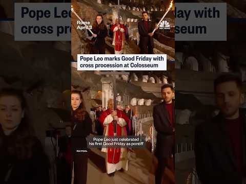 Pope Leo just celebrated his first Good Friday as pontiff by doing something that a pope has not done in decades. Here he is carrying a wooden cross through all 14 stations of the way of the cross at the Colosseum which commemorates Jesus's journey to his crucifixion. A huge crowds gathered outside the coliseum to see what the pope says in an important symbol for the world to see. ...