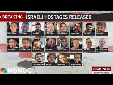 [Music] Welcome back to our continuing coverage. We are still watching what's happening in Israel on the ground in hostage square as we get that news into us that all remaining living hostages are now back with the IDF and in Israel. You see their names and faces on the screen there.A bittersweet moment that marks at least the culmination of one small part of this ongoing conflict. one that the White House, other diplomats, Israeli hostage families, and Israelis themselves have been pushing for for the bett ...