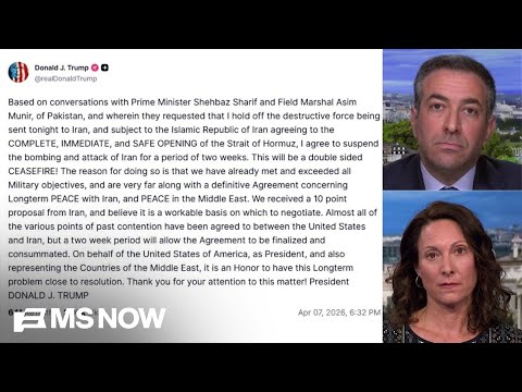President Trump posted on his social media site that he will suspend his threatened attacks on Iran for two weeks. MS NOW’s Ari Melber reports on the latest developments. MS NOW: My Source for News, Opinion, and the World. » Subscribe to MS NOW: https://www.youtube.com/@msnow » Subscribe to MS NOW’s We the People Newsletter for exclusive content from your favorite MS NOW anchors. Sign up now for free at https://ms.now/joinus. MS NOW is the go-to destination for domestic and international breaking news, and ...
