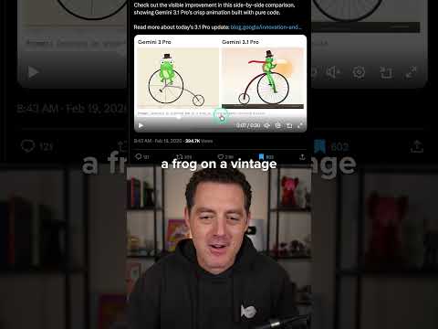 All right, it's Gemini day. Gemini 3.1% Pro is here. Let me just show you the most important benchmark.This is Pelican Bench. How well a model can draw a pelican riding a bicycle using SVG. Let's look at the progress from Gemini 30231.Generate an animated SVG of a pelican riding a bicycle. And as you can see, it is much better, much more fluid motion. But that's not all.We also have a frog on a vintage penny farthing bicycle. Look at this. This one doesn't even make sense at all.But this one, very good. Nex ...