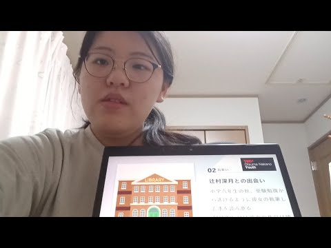 皆さん、こんにちは。これから私と本に ついての発表をしようと思います。最初に 皆さんは今までどんな本を読んできました か. 私自身様々な本をジャンルの本を読ん できました。ですから一概に申し上げる ことはできません。ミステリーも普段は 読みさっていますが、恋愛物も読みますし 、ジャンルを超えて広く読んできたと 振り返ってみると思います。これから私は どうして本を読み始め、そして好きになっ たのかを説明したいと思います。次の スライドをご覧ください。 母が読書家で図書館に1週間に1回は必ず 行く嫌です。8本が幼少から隣にいる生活 を送っていました。 気づいたらよく本を読んでいて、絵本や 自動書など様々な本を修理の本を読んでき たと思い記憶は酔います。しかし図書館に 小学3年生あたりから行かなくなり、 本を読む本を全く読んでおりませんでした 。 本をまた読むようになったのは小学6年生 の秋好きな作家との出会いです。当時受験 勉強から逃げるように本を探しずっと読ん でいました。そうして見つけたのが辻さん という作家さんです。ミステリーを執筆さ れることが多い作家さんで代表作は鏡の 故障 鏡の故障や 鍵のない夢を見る ...