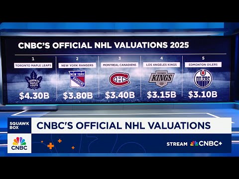 The CNBC is out this morning with its annual list of NHL valuations. The average NHL team now worth $2.2% billion. It's a 15% jump from last year.Now taking the top spot on this year's list, the Toronto Maple Leafs, valued at $4.3% billion. That's followed by the New York Rangers, Montreal Canadians, Los Angeles Kings, and Edmonton Oilers. Joining us right now is the man behind the list, the numbers, our own Michaelian, senior sports reporter.Good morning to you. >> Good morning. >> How has this moved if if ...