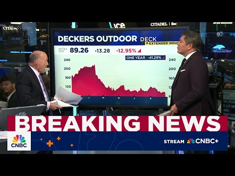 Let's get framers Matt Dash as we countd down to the bell. A lot of consumer names in focus. >> Yeah.And today it's Deckers. Uh they put out a kind of lukewarm guide and that is enough. Now I thought this had been punished over and over and over and it would bottom.But no. Uh you've got Uggs not doing that well. You have Hoka not doing that well. Uh you have the projections not that great.U the enterprise level declines. I mean, this is the truest note that just says there's elevated competition, broader ma ...