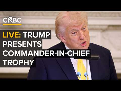 President Trump participates in the Commander-in-Chief's trophy presentation at the White House on Friday. For access to live and exclusive video from CNBC subscribe to CNBC PRO: https://cnb.cx/42d859g » Subscribe to CNBC TV: https://cnb.cx/SubscribeCNBCtelevision » Subscribe to CNBC: https://cnb.cx/SubscribeCNBC » Watch CNBC on the go with CNBC+: https://www.cnbc.com/WatchCNBCPlus Turn to CNBC TV for the latest stock market news and analysis. From market futures to live price updates CNBC is the leader in ...