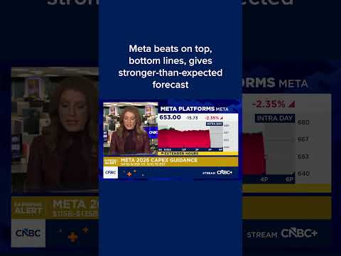 Meta beating on the top and bottom line. EPS of $8.88% versus estimates of $823. Revenues of 59.89% billion showing 24% revenue growth.That's actually an acceleration from the third quarter pace of growth. Analysts had been expecting it to dip slightly um and coming in ahead of estimates of 58.59% billion. The key number here is capex, the company guiding to capex for uh the full year of 2026 in a range of 115 to 135 billion.That is ahead of estimates of about 110 billion. They say this year-over-year growt ...