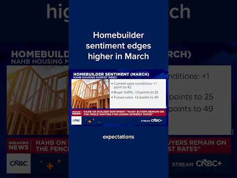 Homebuilder sentiment in March rose one point to 38 and February's reading was revised one point higher. So it's a slight beat. Now the street was looking for 37, but anything on the NAHB survey below 50 is considered negative.The index stood at 39 one year ago. Now this reading was taken this month as mortgage rates moved higher due to the war in Iran and fears over oil and inflation. Of the index's three components, current sales conditions rose one point to 42.Buyer traffic rose three points to 25 and fu ...