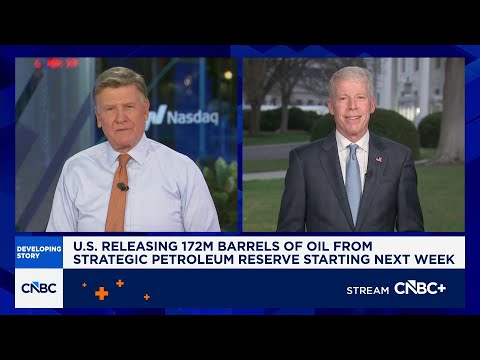 US plans to release 172 million uh barrels of oil from the strategic petroleum reserve in an effort to lower energy costs uh during the Iran war. Joining us now uh is energy secretary Chris Wright. Mr.. Secretary, it's good to see you. Thanks for for hanging out talking about the play. You probably were listening to some of that, but we appreciate you you joining us this morning.>> You bet. Thanks for having me, Joe. >> I'm doing some some math here and thinking about the SPR.Uh we're only at 58% right now. ...