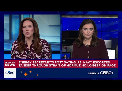 Uh, Pippa Stevens is uh getting back in front of a camera because this news it just keeps changing. >> That's right, Kelly. So, we've been talking about the post on X about the US Navy escorting a ship through the straight of Hormuz and oil prices of course move lower, but the post is no longer on the secretar's page and the link now says the post does not exist.We have reached out to secretary secretary of energy for comment here. You see WTI now back above that $80 level. Kelly >> Pippa, the the intraday ...