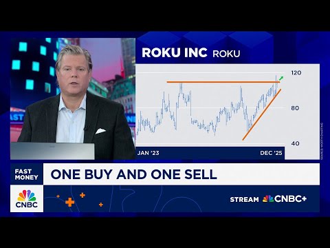 get to work. So, uh, chart number one, uh, let's start with Roku. Um, Roku is a a boom bus kind of thing.Now, you don't see that here in this first chart, but look at the importance of the 110 level. Let's pull this back a little further and look at the second of three iterations. That 110 level is in play.Let's look at the third and final chart, which picks up what a boom bust this thing has been. This dropped from 600 to uh 35 losing about 90% of its value and has been basing ever since. And uh this actio ...