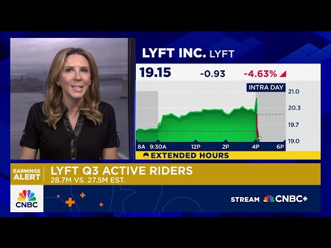 has the numbers, Matt. >> Hey, John. It is mixed results for Lyft.Those shares moving almost 5% lower in extended trade. Earnings coming in at 11 cents per share, beating the 8 cents that analysts were looking for. Revenue was essentially in line at 1.69% billion.Gross bookings, that's the total value of rides on the platform, were a slight beat at 4.78% billion. Active riders also came in ahead of estimates at 28.7% million. While profitability it was in line with adjusted Ibida of 139 million.Looking ahea ...