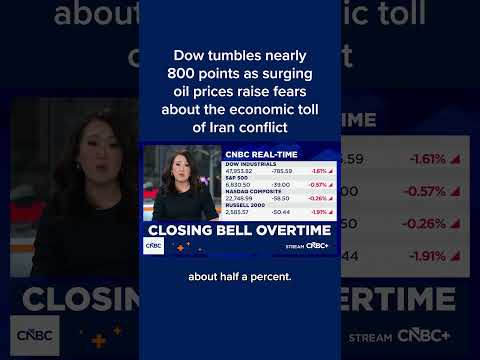 Dow tumbles nearly 800 points as surging oil prices raise fears about economic toll of Iran conflict