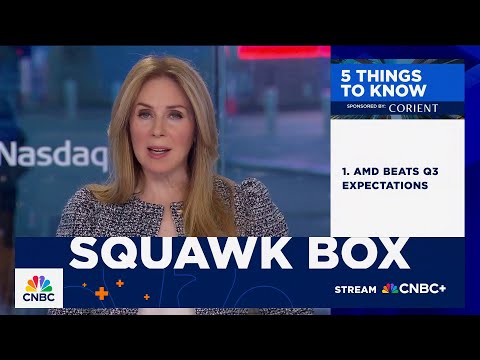 Five things to know ahead of the opening bell this morning. First up, AMD posting better than expected earnings and revenue and offering upbeat guidance. Separately, Amazon disclosed yesterday that it had sold all of its 822,000 shares in AMD.Net result, that stock is off by about 5 and a half% this morning. Pinterest shares plunging after the company reported profit that was below expectations and gave weak guidance. That stock down by close to 18% this morning.And then you've got EV maker Rivian reporting ...