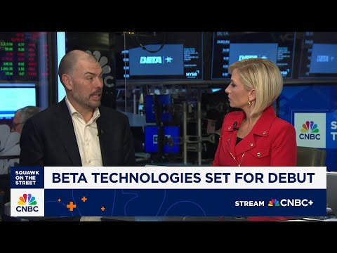 are awaiting the first trade of Beta Technology. It's an aircraft maker pricing uh its stock at 34 bucks a share that was just above the indicated range raising over a billion dollars. Joining us right here at Coast 9 in a first on CNBC interview is the company's founder and CEO Kyle Clark and Morgan Brennan here as well.Morgan, >> hey David and Kyle, it's good good to have you here. Welcome. >> Great to be here.>> So, you had an upsized IPO offering. You've priced above the range. Uh why take Beta Technolo ...