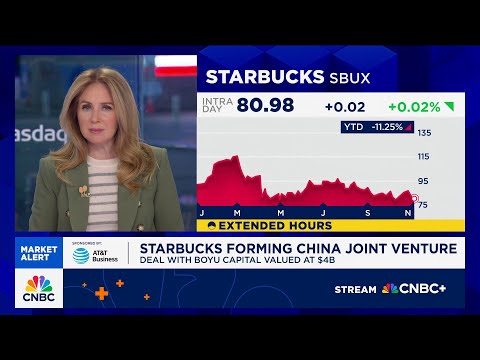 Starbucks is forming a joint venture with Chinese alternative asset management firm Buoyu Capital to operate the coffee chains locations in China. That deal is valued at $4 billion. Buyu will hold up to a 60% interest in the joint venture with Starbucks holding the 40% stake.The company though has conducted a monthslong review of options for its China business which includes about 8,000 coffee shops. Boy's founders include the grandson of one of China's former presidents. And if you look at Starbucks shares ...