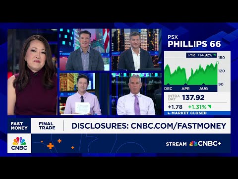 Time for the final trade. Let's go around the horn. Tim, >> that Yankees Mets argument at the break with guy almost had me forget that I chose GM as my final trade.Go GM. >> Steve, >> Amazon seat at the table. >> Dan, >> nice.Um, lemonade. >> Did you forget too. >> I did.Um, this is an AI powered insurance company. We talked a little bit about that. They report on the wait for that, but that's a good name.>> Guy, do you remember your final trade. >> Yes, it's it would be PSX. It used to be Phillips 66.It's ...