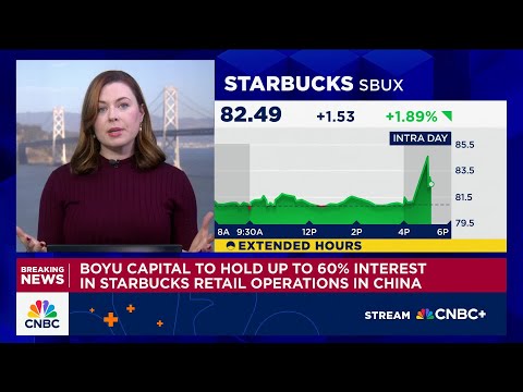 business. Kate Rogers got the details. Kate, >> hi Melissa.That's right. We've been uh anticipating this news. Starbucks announcing its founding partner in China, entering into a joint venture agreement with Buoyu Capital.It's a leading alt investment firm to operate Starbucks retail business in China. Now, under this agreement, Buoyu will hold up to a 60% interest in Starbucks retail operations in China. Starbucks will retain a 40% interest in the joint venture and it will continue to own and license the S ...