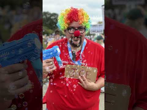 This is Joe Barrett in Chicago's Grant Park where the no kings protest is just getting underway. It's a bit of a party atmosphere here. There's people in inflatables.Uh I spoke briefly with a unicorn. Trump regime's trying to make it seem like a violent protest and it's clearly not. So just having fun and trying to spread positivity.I talked to a guy who uh was dressed up as a clown from ICE who was asking people if they had their uh to proof of their papers and when they said no, he shot him with a chemica ...