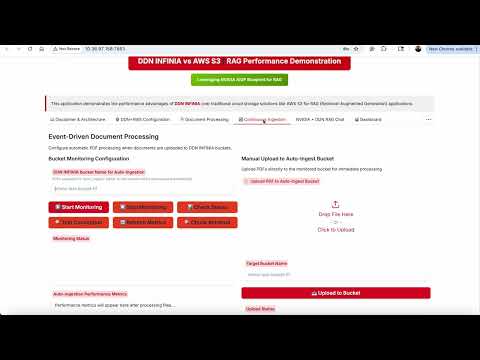 Welcome to this demonstration. Today we'll be showing how DDN enables a one-click high-performance rag pipeline for enterprise use. Our rag pipeline solution is enterprise class and easy to deploy and use in any cloud environment whether AWS, GCP, Azure, any NCP cloud and of course on prem.Let's take a closer look at the architecture. This rag pipeline solution is made of several NVIDIA Nemo NIMS or NVIDIA inference microservices which host embedding reranking LLM models a milild vector database a front-end ...