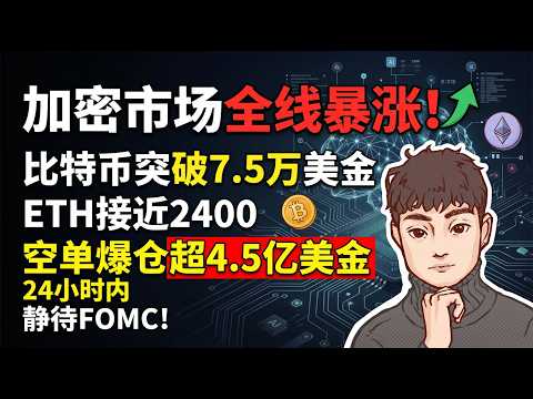 加密市场全线暴涨!比特币突破7.5万美金,eth接近2400,空单24小时内爆仓超4.5亿美金,静待fomc!【Vic TALK第1598期】