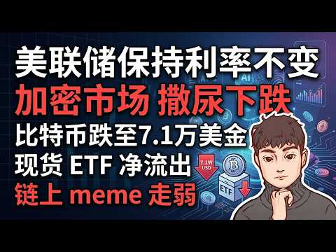 美联储保持利率不变,加密市场撒尿下跌,比特币跌至7.1万美金,现货etf出现净流出,链上meme走弱 【Vic TALK第1600期】